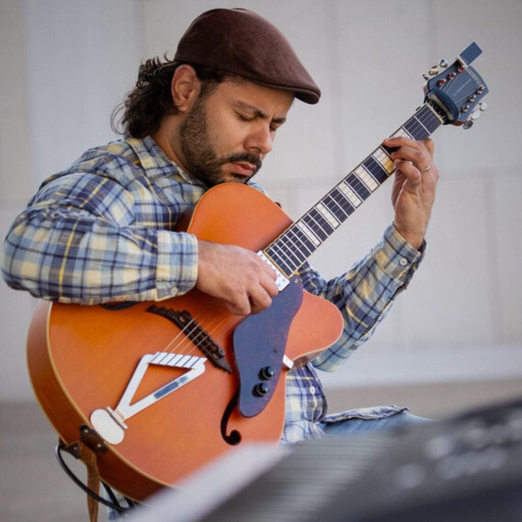 During this time, Pedro also continued to develop his guitar and composition skills through online mentorships. He studied with guitarist Ulisses Rocha, focusing on advanced classical and Brazilian guitar pieces for nylon guitar, including Rocha’s well-known arrangement of “Ponteio” by Edu Lobo, as well as works by Villa-Lobos and other classical repertoire. On electric guitar, he followed the George Benson method, created by Peter Farrel, who studied privately with Benson for over 15 years. Pedro participated in Farrel’s weekly lessons for six months, aligning perfectly with his personal goals.